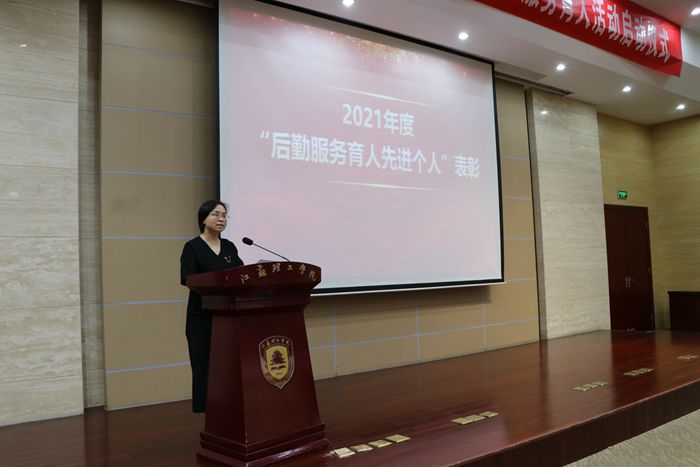 会上,对“2021年度后勤服务育人先进个人”进行了表彰,俞亚萍宣读了表彰文件,崔景贵、俞亚萍共同为获得表彰的先进个人颁发了证书,先进个人代表单春雨、熊佳秀、陈丽慧在会上交流发言。后勤保障处处长、后勤服务总公司总经理蒋益锋部署了新学期工作。后勤服务总公司发布了《2022年度“三创三建”服务育人活动实施方案》,向劳动教育实践课程首批讲师颁发聘书。
